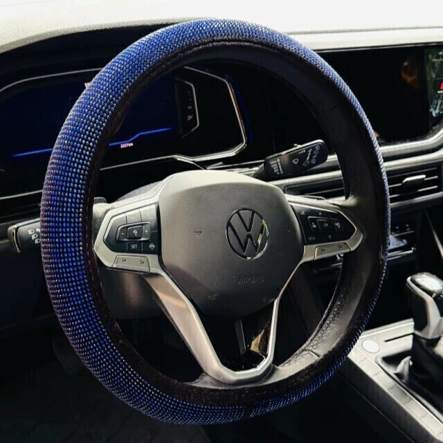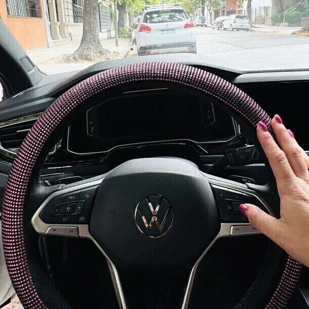 Material: PVC reforzado, textura similar al cuero (cubrevolante total golden y total negro)