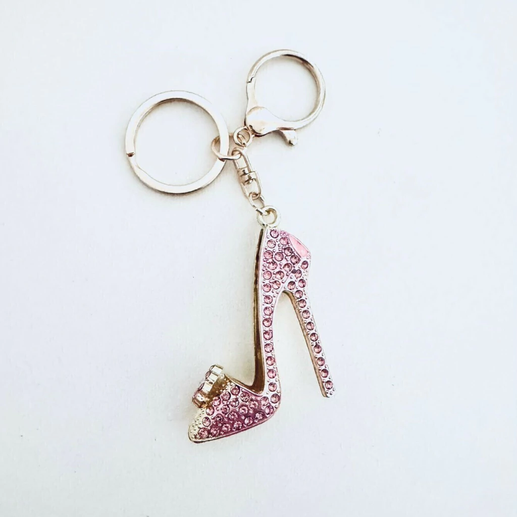 Equipado con mosquetón reforzado. El mosquetón y el llavero están disponibles en dorado o plateado, sujeto a stock. los brillos vienen solo en el frente (tal como se ve en la foto)